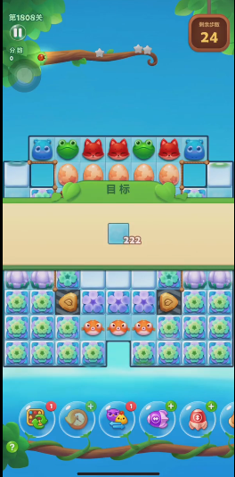 小精灵会主动寻找并吃掉其上下左右位置上的同色动物,每吃一个动物就会充能一部分,直到完全吃饱为止。在这个过程中,小精灵会移动到被吃动物的位置,并继续寻找下一个目标,如果周围还有同色动物,它会持续进食。这种充能机制意味着玩家不能直接通过交换相邻动物来消除小精灵,而是需要利用其进食行为来间接控制它。玩家应当留意小精灵的移动路径,并提前在关键区域布置同色动物,以加速其充能过程,从而避免它阻碍其他消除目标。